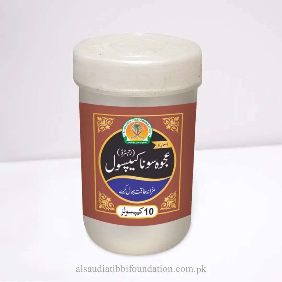 Ajwa Sona Capsules by Al-Saudia Tibbi Foundation are an exclusive herbal formulation designed to significantly improve men’s sexual health, stamina, and performance. Crafted with super special ingredients, including the potent Ajwa dates, these capsules help boost sexual vitality, energy, and overall health. Rooted in the wisdom of Tibb-e-Nabvi, these capsules provide natural, effective support for a fulfilling and active sexual life, enhancing both physical and emotional well-being.