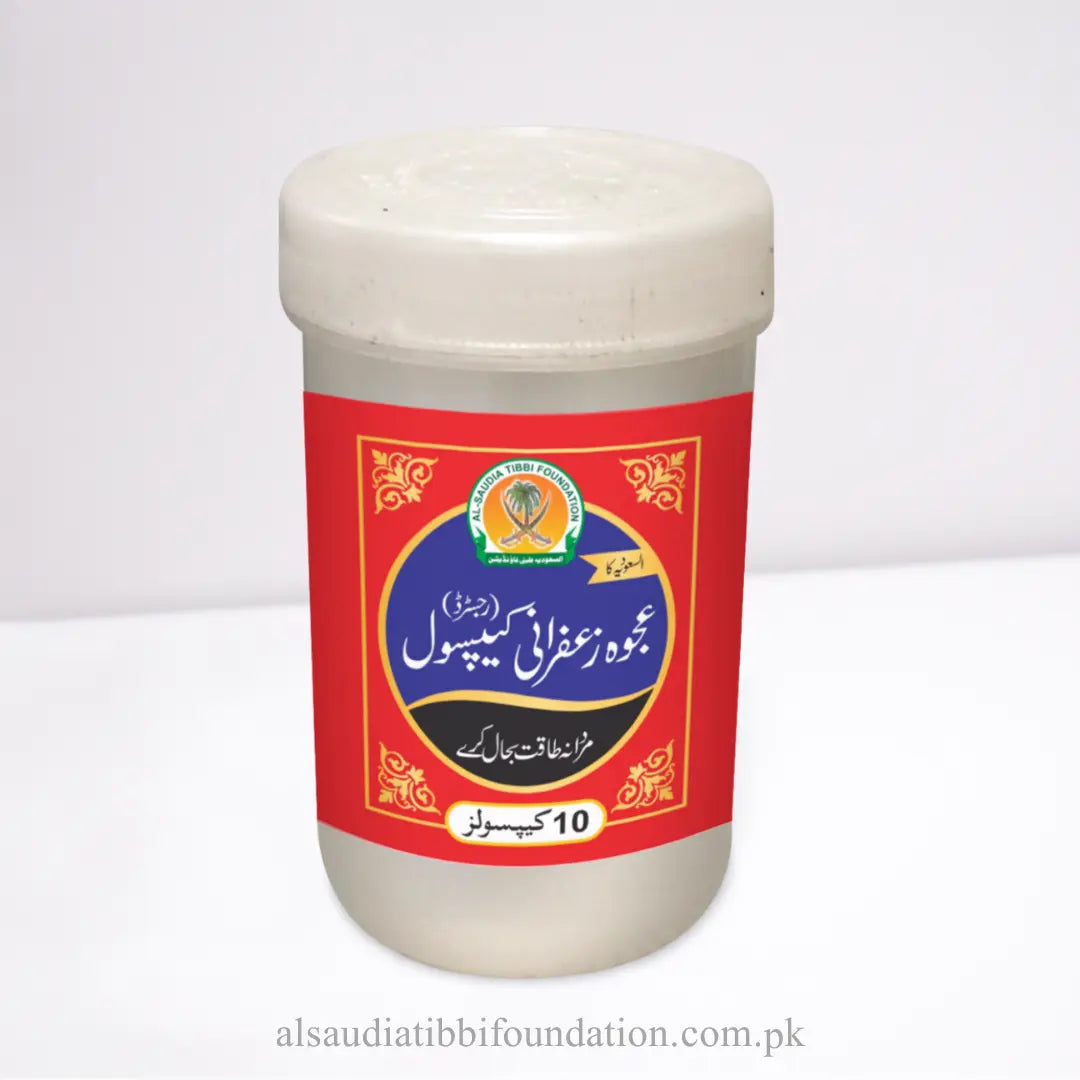 Ajwa Zafrani Capsules by Al-Saudia Tibbi Foundation are an entirely natural solution crafted to elevate men's sexual health and vitality. Combining the renowned aphrodisiac benefits of Ajwa dates with the rejuvenating power of Zafran (saffron), these capsules work to enhance sexual stamina, boost energy levels, and promote overall sexual well-being. Rooted in the wisdom of Tibb-e-Nabvi, this herbal remedy offers a safe and effective approach to naturally enhancing sexual performance and vitality.