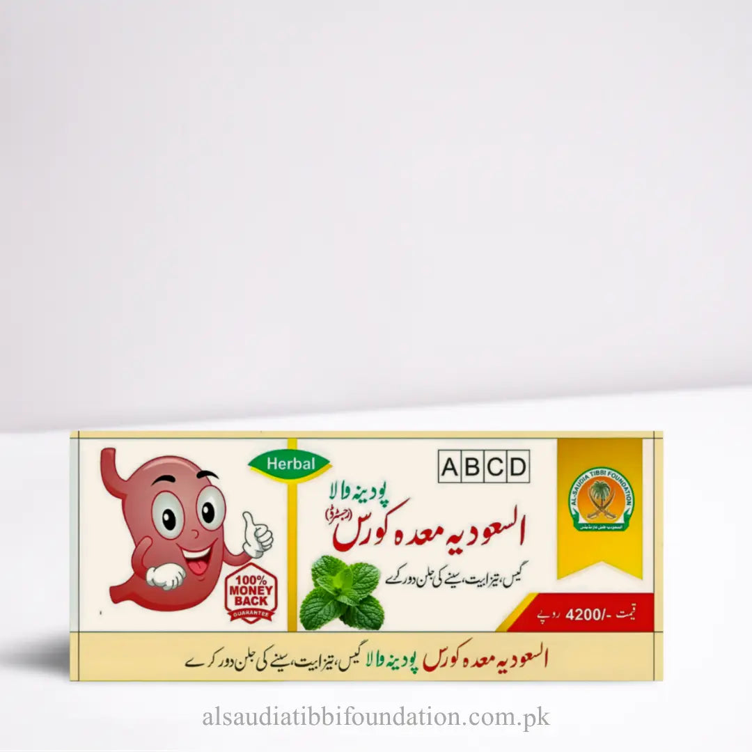 السعودیہ طبّی فاؤنڈیشن کا السعودیہ معدہ کورس (پودینہ والا) ایک مجرب ہربل فارمولا ہے جو معدے کی خرابی کو درست کرے ، گیس ، تیزابیت اور سینے کی جلن ختم کرے