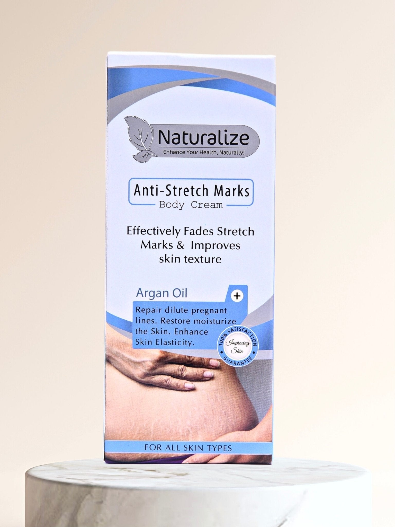 Solution to a stubborn problem, this effective blend of Argan Oil, Jojoba Oil, Shea Butter and Elastin helps minimize stretch marks post pregnancy or weight fluctuation. Naturalize Anti-Stretch Marks Cream helps improve blood circulation and collagen production while improving hydration by stimulating skin repair process.