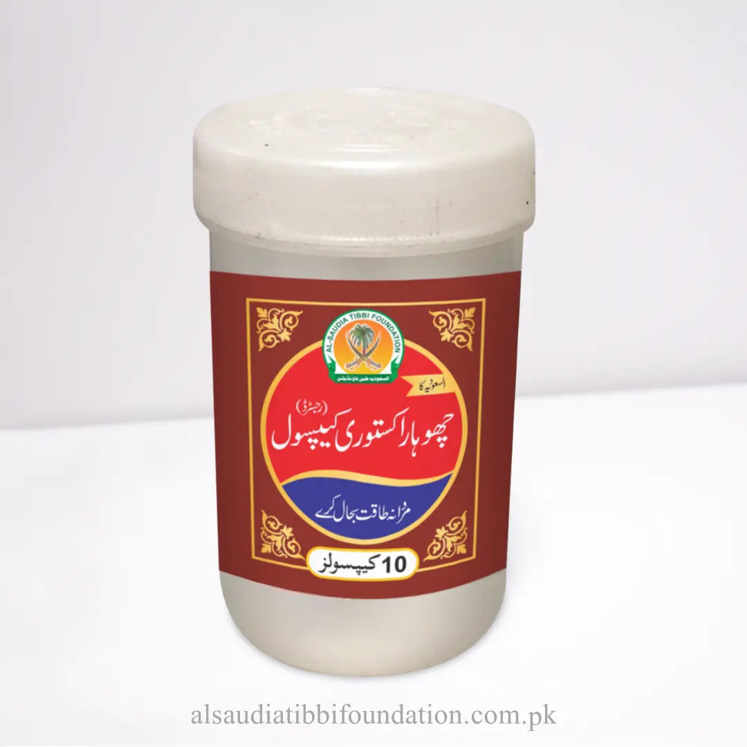 Chohara Kasturi Capsules from Al-Saudia Tibbi Foundation are crafted to enhance men's strength, stamina, and sexual vitality. By merging the energizing properties of Chohara with the rejuvenating benefits of Kasturi (musk), this herbal formula boosts libido, increases endurance, and promotes overall well-being. Grounded in the time-tested principles of Tibb-e-Nabvi, these capsules offer a safe, natural approach to improving physical and sexual health.