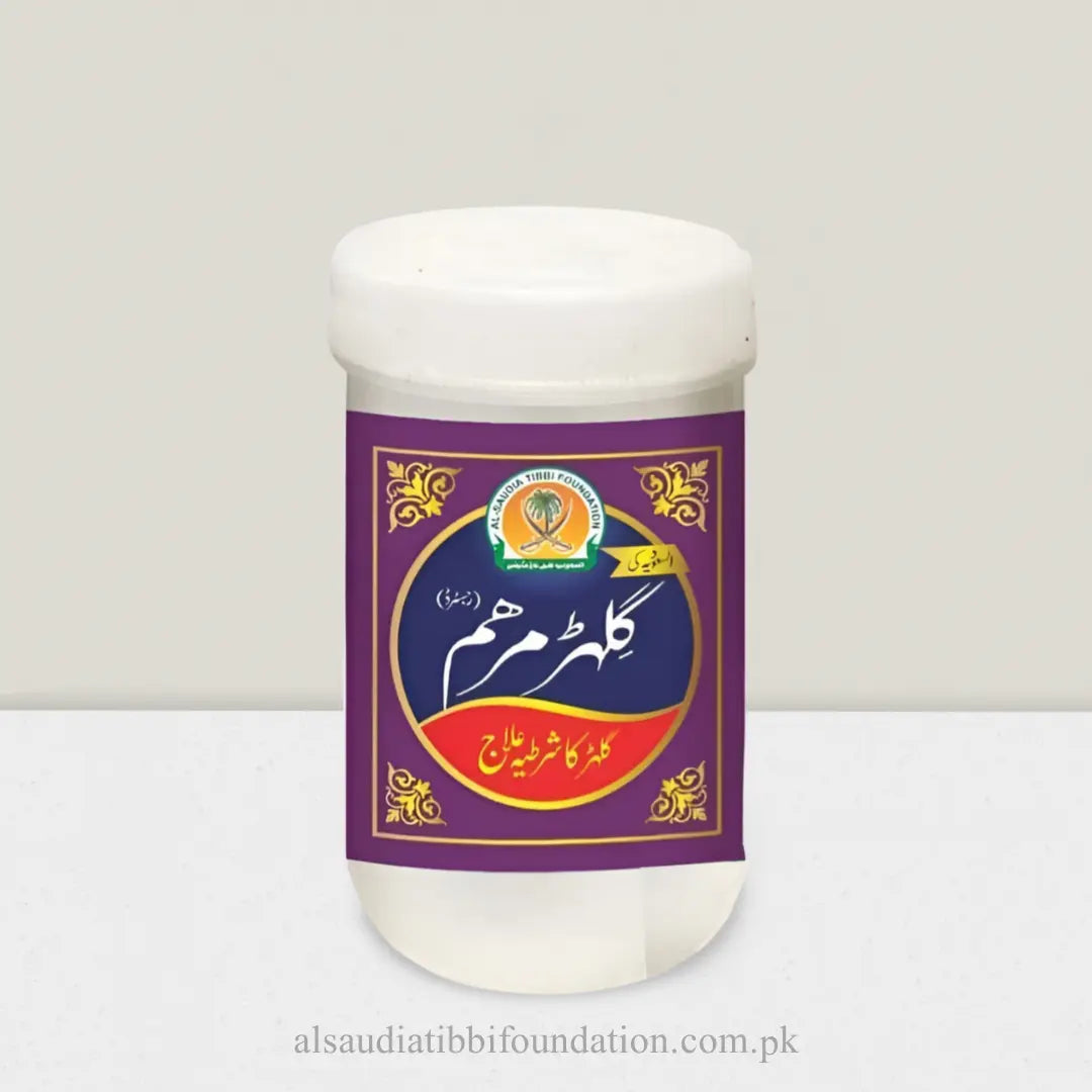 Gilhar Marham by Al-Saudia Tibbi Foundation is designed to support thyroid health and ease goiter (گِلہَڑ) discomfort without resorting to surgery. Crafted with a blend of time-honored botanicals, Marham harnesses the healing power of nature to help reduce swelling and restore balance.