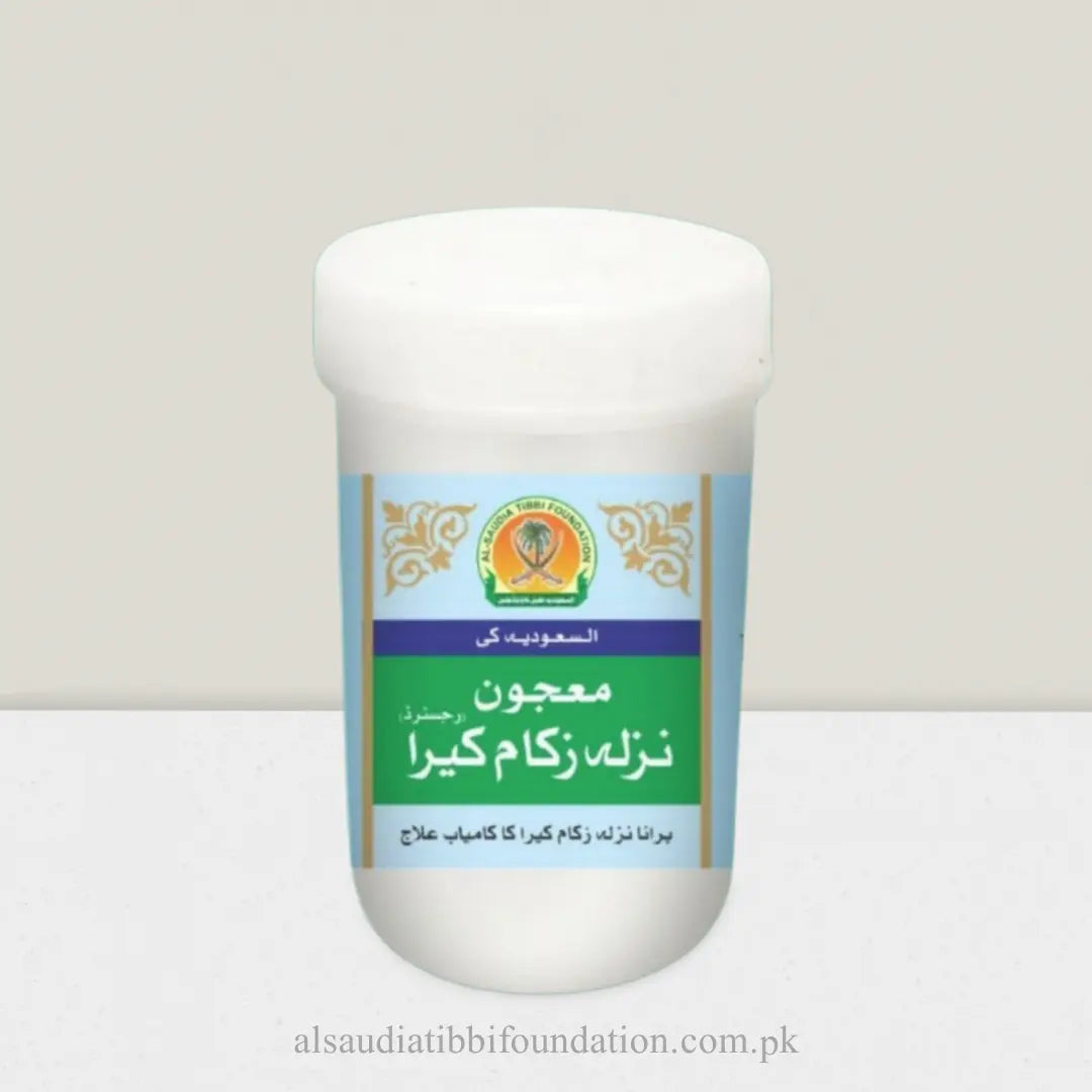 السعودیہ طبّی فاؤنڈیشن کی معجون نزلہ زکام کیرا ایک ہربل مرکب ہے جو مردوں اور خواتین دونوں کے لیے دائمی نزلہ، زکام، اور کھانسی کا مؤثر علاج فراہم کرتا ہے۔ تِلسی، ادرک، ملیٹھی کی جڑ، اور پودینہ جیسی قدرتی جڑی بوٹیوں کی اور مخصوص قدرتی سے اجزاء تیار کیا گیا ہے جوسانس کی نالیوں کی جلن کو کم کرتے ہیں، ناک کی بندش کو صاف کرتے ہیں، اور جسم کی قوت مدافعت کو مضبوط بناتے ہیں، جس سے سانس لینے میں ہونے والی دیرینہ تکلیف سے مکمل آرام ملتا ہے۔