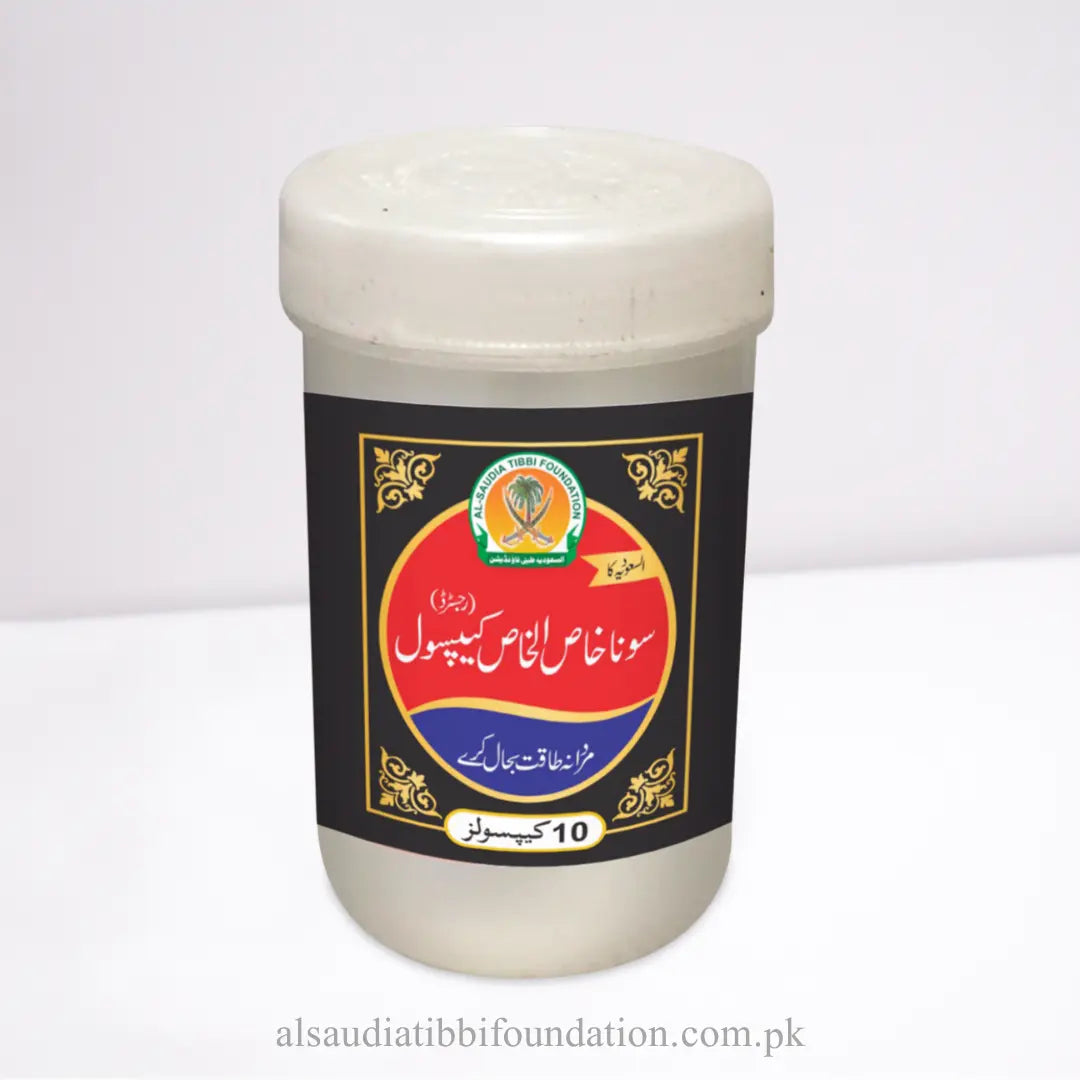Sona Khas al Khas Capsules by Al-Saudia Tibbi Foundation are expertly crafted using the finest natural ingredients to significantly boost men’s sexual health and performance. Designed for those seeking enhanced libido, stamina, and vitality, these capsules naturally support optimal sexual function. The unique Khas al Khas formula works to elevate energy levels, improve sexual performance, and enhance overall well-being. Inspired by the timeless wisdom of Tibb-e-Nabvi, this premium remedy offers a safe, natural solution for revitalizing sexual health and physical prowess.